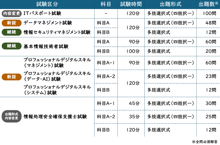 - 情報セキュリティマネジメント試験・基本情報技術者試験は一部変更予定